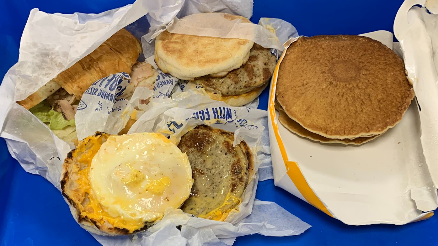 The contraband Macca's run included two egg and beef sausage McMuffins, hot cakes and a ham croissant.
