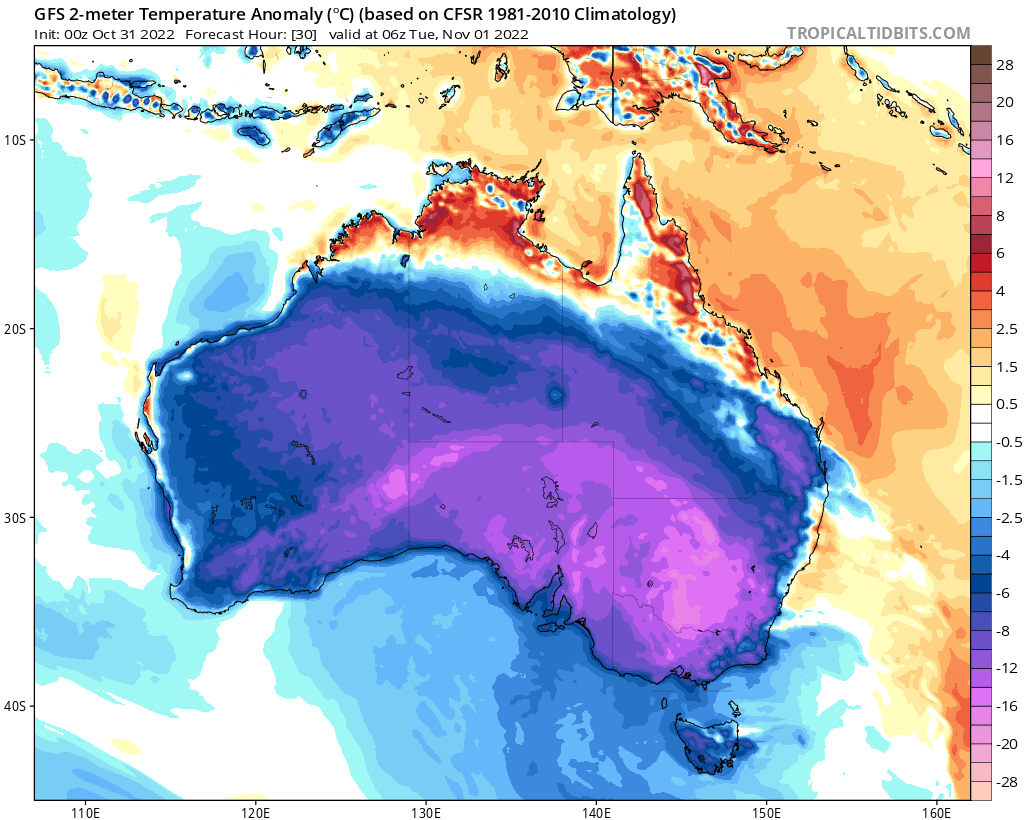 Weatherzone said temperatures of 10C-15C below normal.