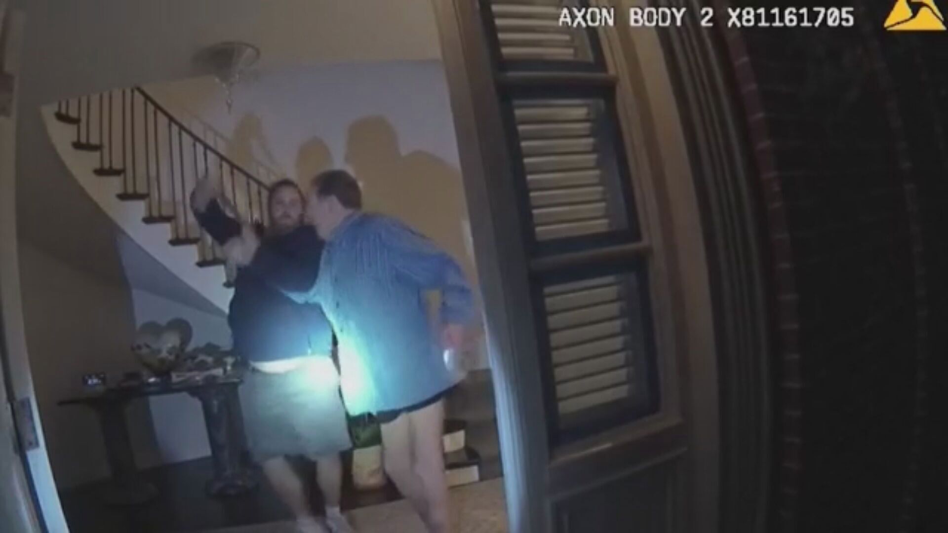 The blow to Pelosi occurs out of the camera's view and the officers — one of them cursing — rush into the house and jump on DePape.