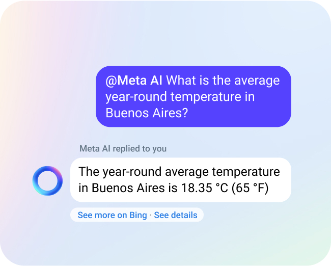 You can have a one-to-one chat with Meta AI to ask for recipe advice or get answers to your burning questions, answered thanks to a partnership with Microsoft and Bing Search.