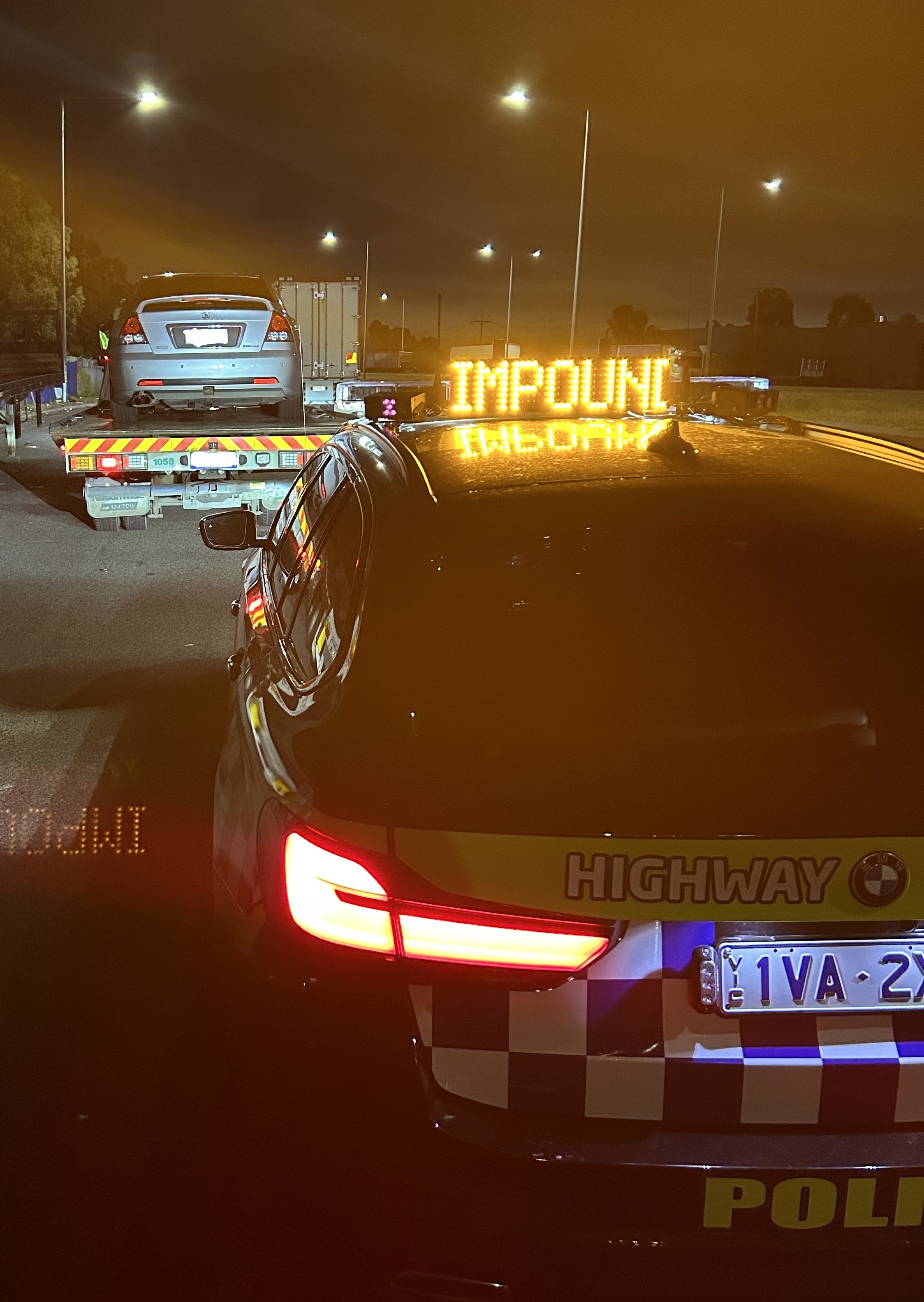 Police allegedly spotted a Holden Commodore sedan speeding on Western Ring Road in Tullamarine at about 11.15pm overnight.