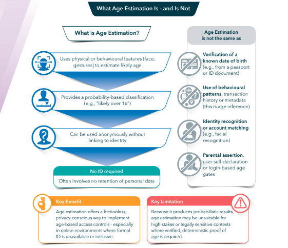 Age inference, which uses behavioural patterns, contextual data, digital interactions or metadata – as opposed to either hard documents or biometric data – also offered strong privacy benefits but would need tailoring to specific contexts and had problems with bias.